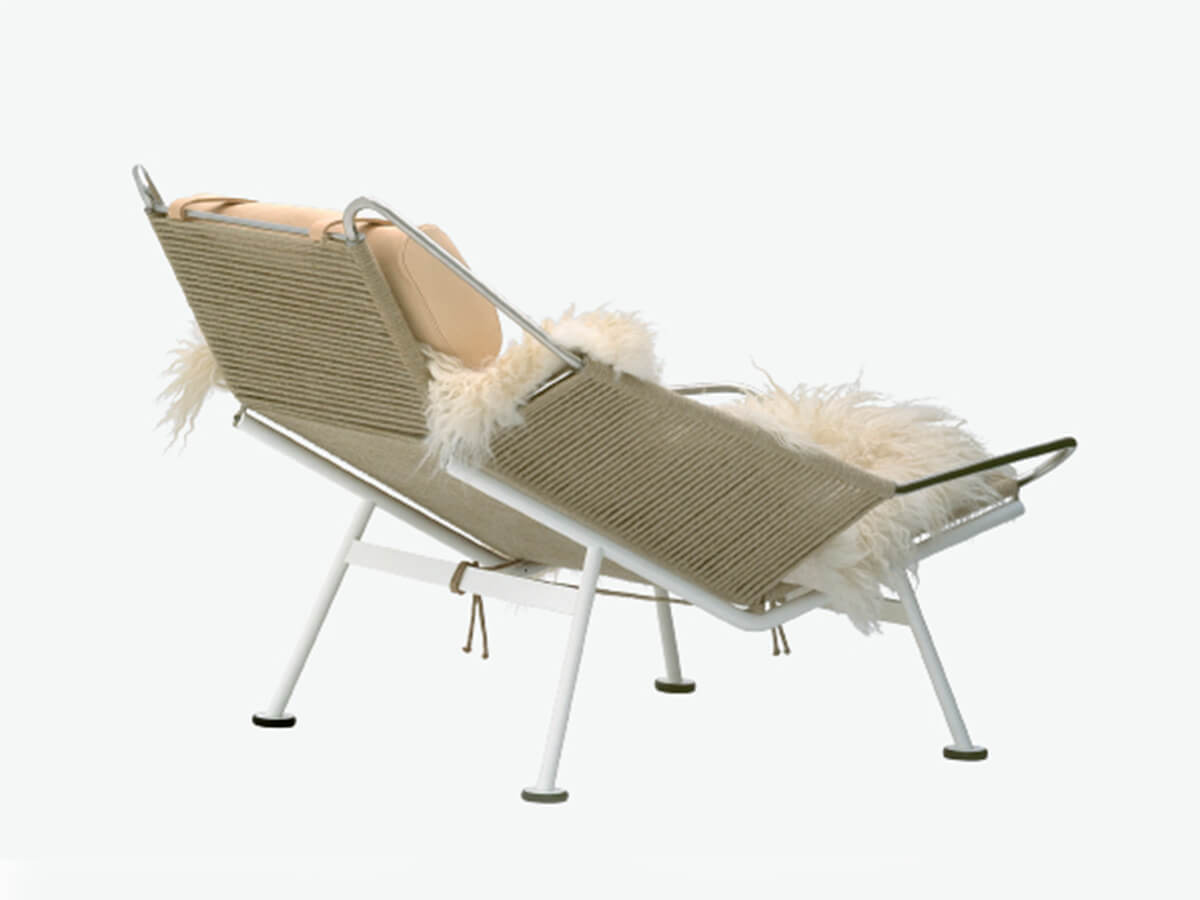 *Prezzo valido per la versione con struttura laccata bianco e corde in colore naturale - cuscino poggiatesta rivestito in tessuto standard – coperta in pelo bianco inclusa (cod. PP225).