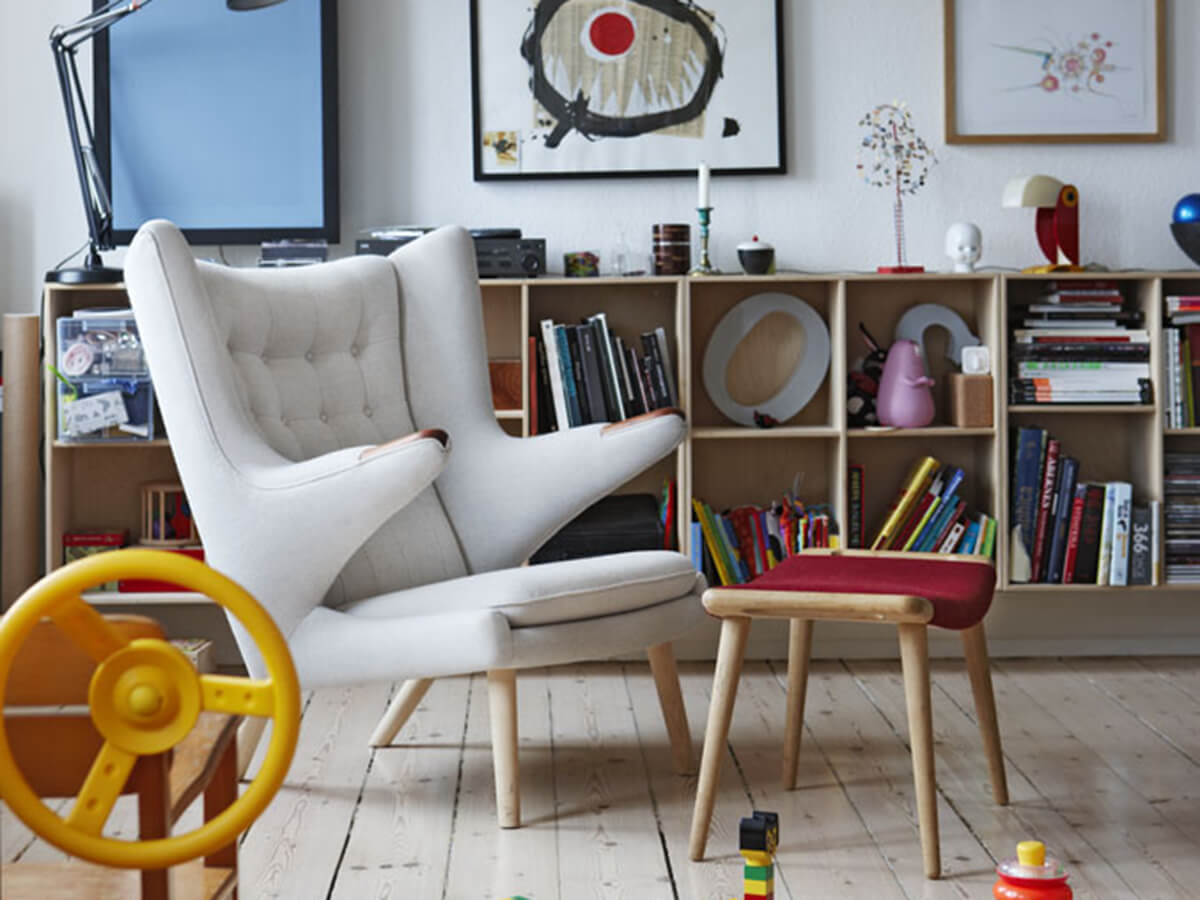 La poltrona PP19 Papa Bear Chair di PP Møbler è una delle grandi icone del design scandinavo. Disegnata nel 1953 da Hans J. Wegner, le sue versioni d’epoca sono ricercatissime nelle aste di arredi di modernariato e raggiungono quotazioni da capogiro. Rappresenta al meglio quella vocazione al comfort che è una delle grandi linee di tendenza spesso sottovalutate del design scandinavo: si presenta infatti come una seduta dallo schienale alto e abbondante, solo leggermente inclinato, con due ali laterali che abbracciano il corpo di chi vi siede e che a mezz’altezza si prolungano nella formazione dei braccioli. Grande attenzione è posta nel rivestimento, ottenuto da un mix di quattro materiali diversi: cotone, foglie di palma, fibra di lino e crine di cavallo, organizzati attorno a molle metalliche. Grazie ad essi la Papa Bear Chair tende a diventare sempre più comoda col passare degli anni, adattandosi al corpo dell’utilizzatore.