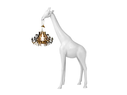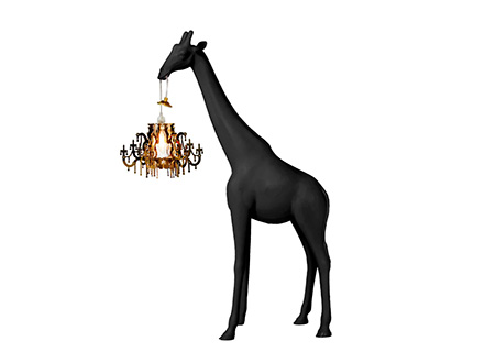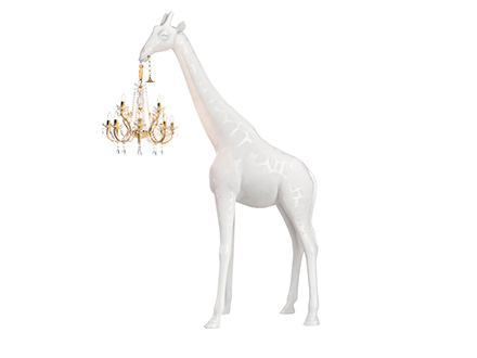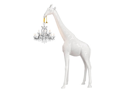 Una lampada dal sapore unico, che riesce a coniugare grande capacità immaginativa a un senso estetico fuori dal comune. Ironica, Giraffe in Love è l’esatta coniugazione fra lampada da soffitto e lampada da terra in quanto raffigura una giraffa che regge un lampadario del classico stile Marie-Thérèse. L’altezza è considerevole, circa 2, 65 metri, ed è disponibile in due varianti di colore. La materia in cui è realizzata, polietilene, la rende incredibilmente versatile e leggera, particolare voluto dal suo creatore, Marcantonio, per riuscire a collocarla in diversi ambienti della casa, specialmente soggiorni e aree living. La sua bellezza è innegabile, ma senza dubbio adatta a palati che prediligono il diverso e l’inconsueto.
