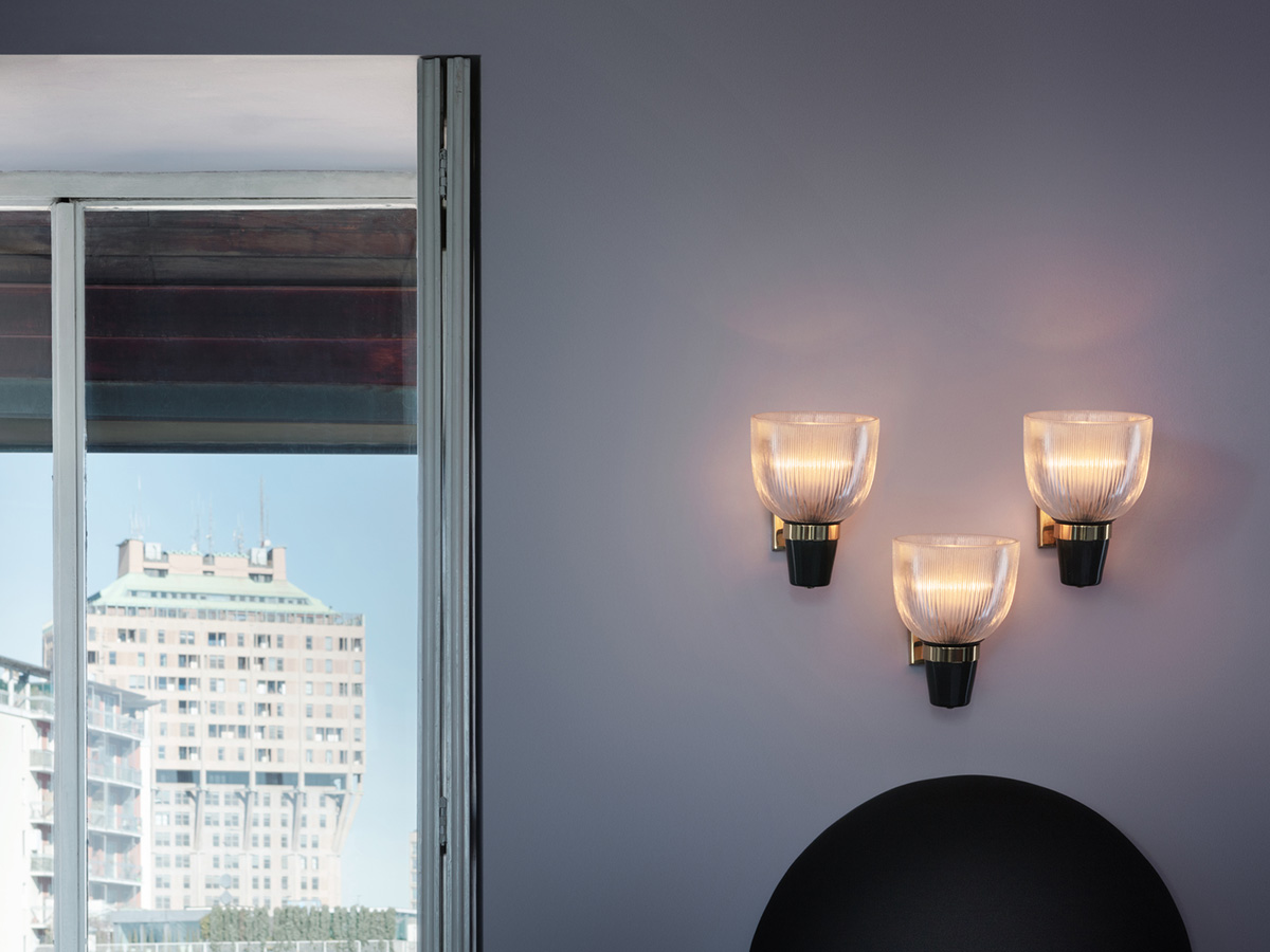 Il design di Coppa Aperta nasce dal duo Ignazio Gardella e Corrado Corradi Dell’Acqua, designer di incredibile talento. Coppa Aperta incarna non solo l’originalità, ma anche la ricerca stilistica del design milanese degli anni Cinquanta, portando lustro all’utilizzo del vetro industriale utilizzato per illuminare i vecchi tram della città. L’effetto creato dall’utilizzo di questo particolare è unico e fortemente evocativo, ideale per nostalgici ma anche per coloro che amano circondarsi di pezzi di storia riproposti in chiave moderna. Il diffusore di Coppa Aperta è prismatico, sorretto da una struttura in ottone che permette la distribuzione di fili luminosi nell’ambiente.