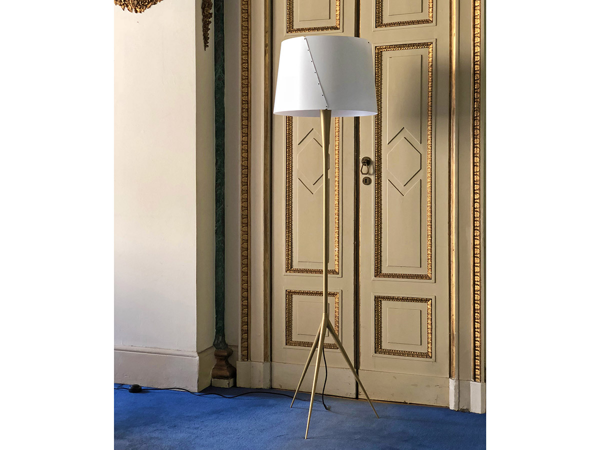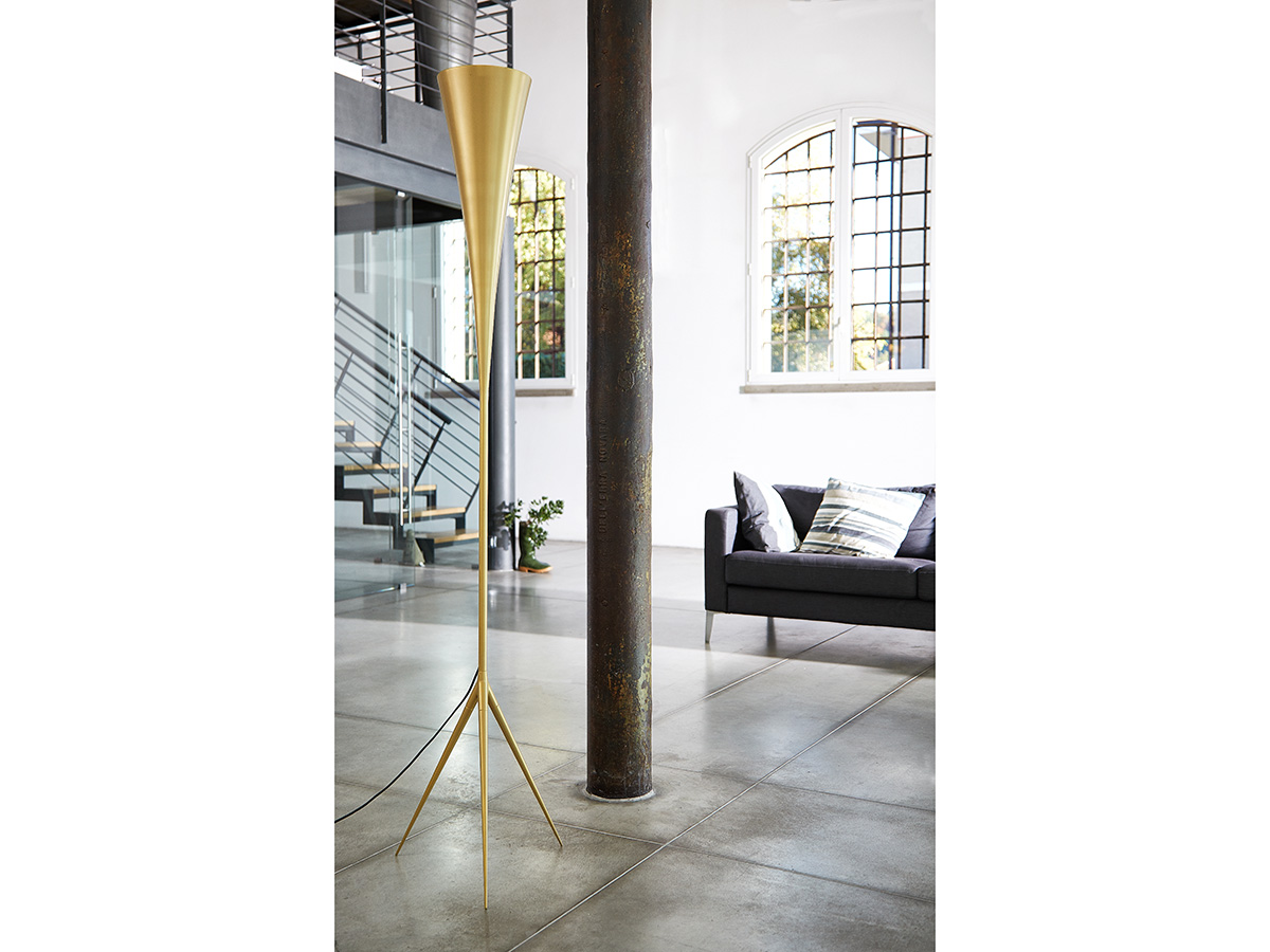 Una lampada da terra progettata da Gio Ponti e prodotta dal marchio Tato, azienda il cui gusto risiede nel rieditare pezzi d’autore del passato donando loro nuova luce e lustro in epoca contemporanea. De-Lux nasce dall’archivio di Gio Ponti, riesumato e reso vivo grazie alla meticolosa azione del marchio che ha saputo darle corpo e struttura declinandola nelle forme che oggi abbiamo imparato ad apprezzare e amare. Il corpo centrale, snello e assolutamente privo di sbavi, si configura come un unico fusto aperto nella parte finale per facilitare la diffusione della luce. Che via sia o meno un paralume, De-Lux spicca per le finiture delicate e i colori ancor più morbidi, ideali per rendere la luce assoluta protagonista della scena.