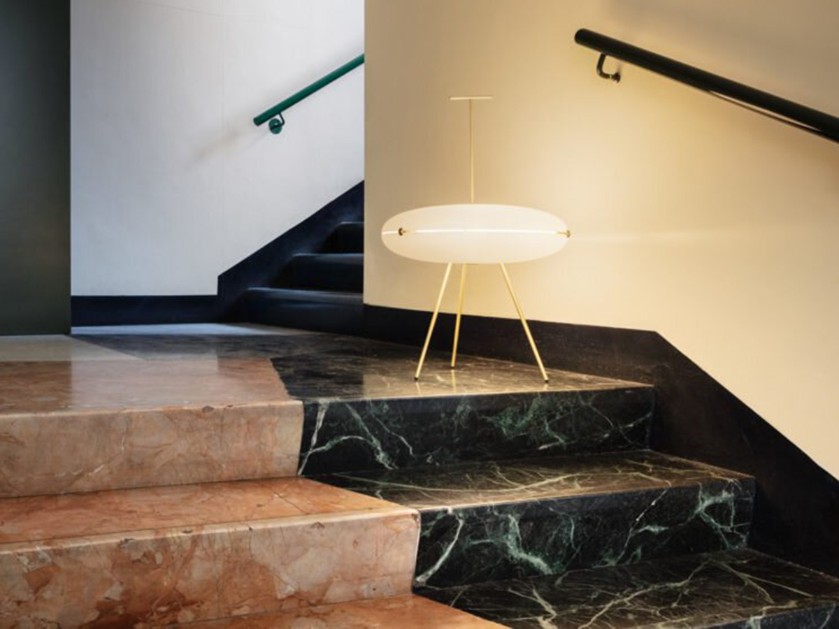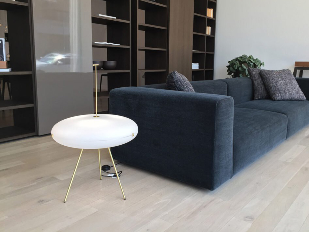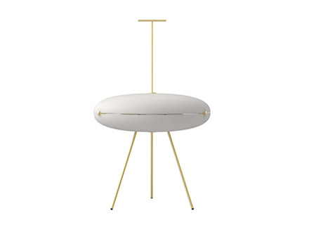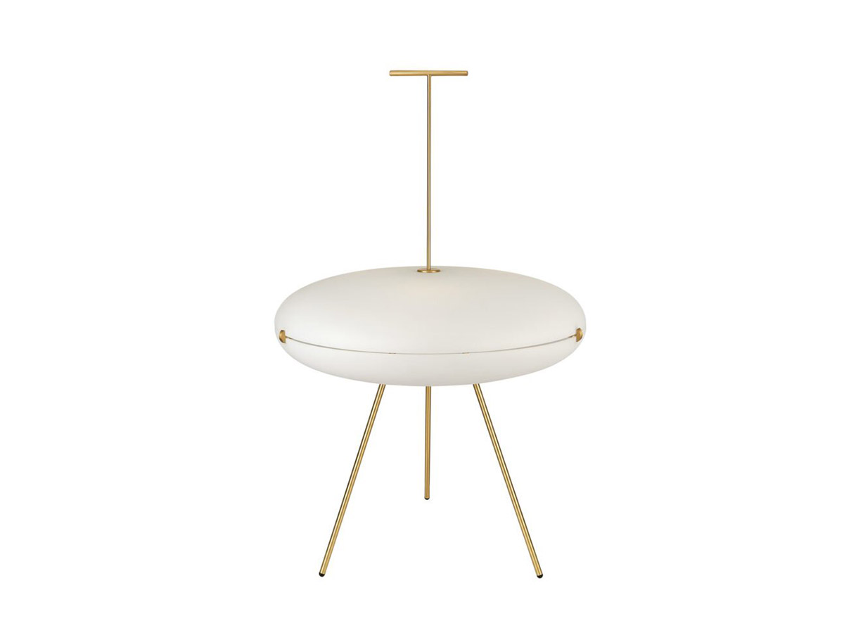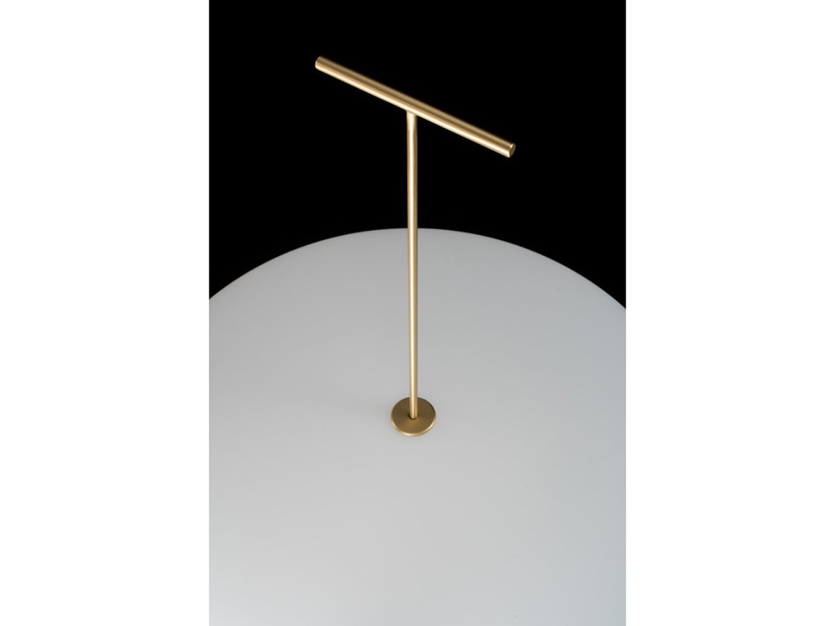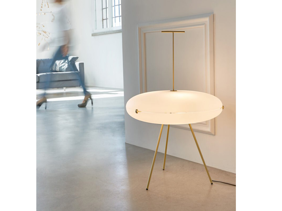 La lampada da terra Luna di Tato nasce dall’ispirazione del design Gio Ponti e la sua capacità di immaginare elementi d’arredo unici e fortemente caratteristici. Il disegno prevede un diffusore in plastica ancorato a una struttura metallica disponibile in diverse finiture fra cui ottone satinato o nickel satinato. L’idea nasce per l’undicesima edizione della Triennale di Milano del 1957, oggi messa in produzione nella versione da terra orizzontale che prevede una sfera schiacciata da pali sull’asse verticale e orizzontale. L’impugnatura superiore rende facile spostare la struttura in diverse parti della casa. Semplice e fortemente ispirata, Luna è un elemento luminoso particolarmente adatto a contesti di classe, ma può comunque prestarsi a utilizzi più eterogenei.