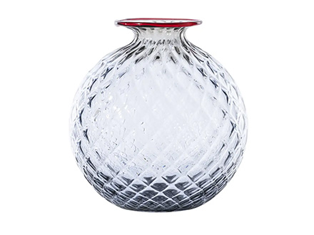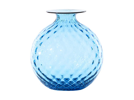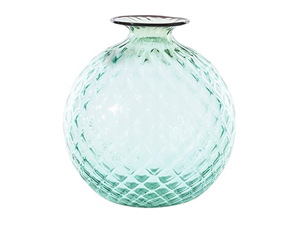 Monofiore Balloton fa parte di una collezione di vasi prodotti e disegnati da Venini, azienda leader nella lavorazione del vetro e nella produzione di vasi di design. La sua particolarità consiste proprio nella lavorazione del vetro che ricrea l’effetto matelassé in diverse colorazioni. La gamma di vasi Monofiore viene lavorata a mano, soffiati e finiti con un filo colorato applicato a caldo che racchiude il decoro. Nella serie di varianti disponibili, questa collezione esprime un gusto senza tempo per il lusso e la raffinatezza, ricercata in ogni elemento che grazie alla propria lavorazione diviene unico e impossibile da replicare.