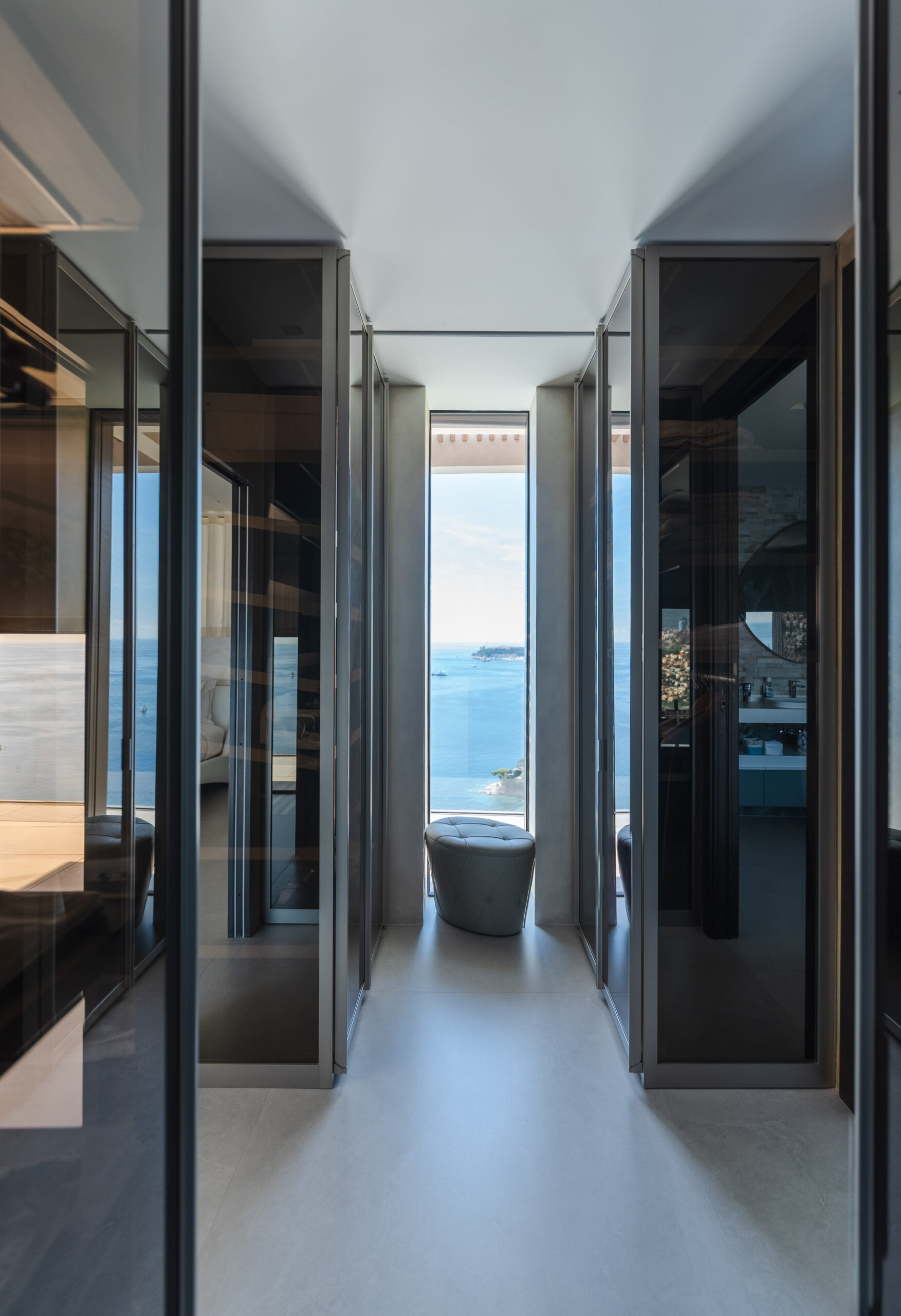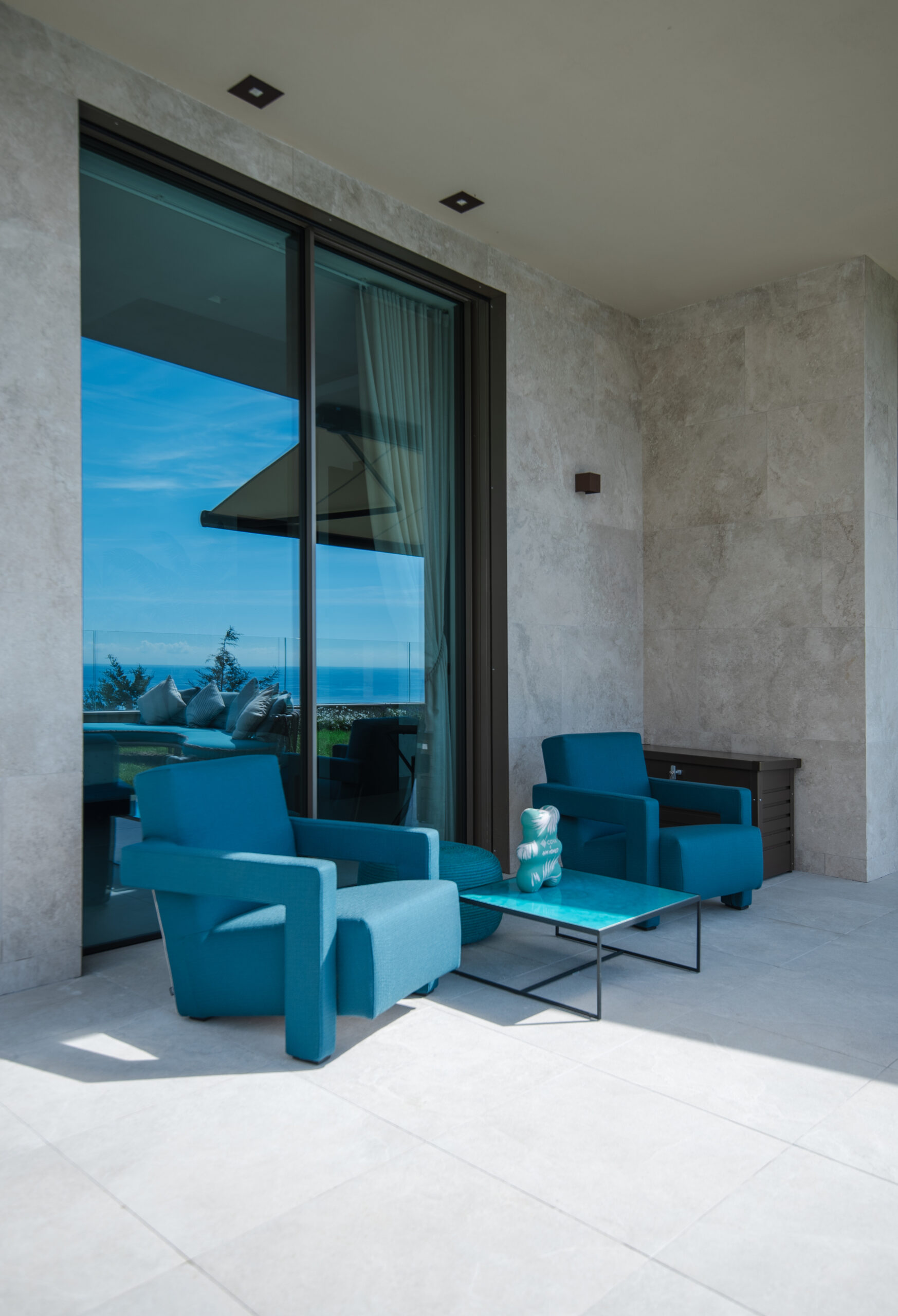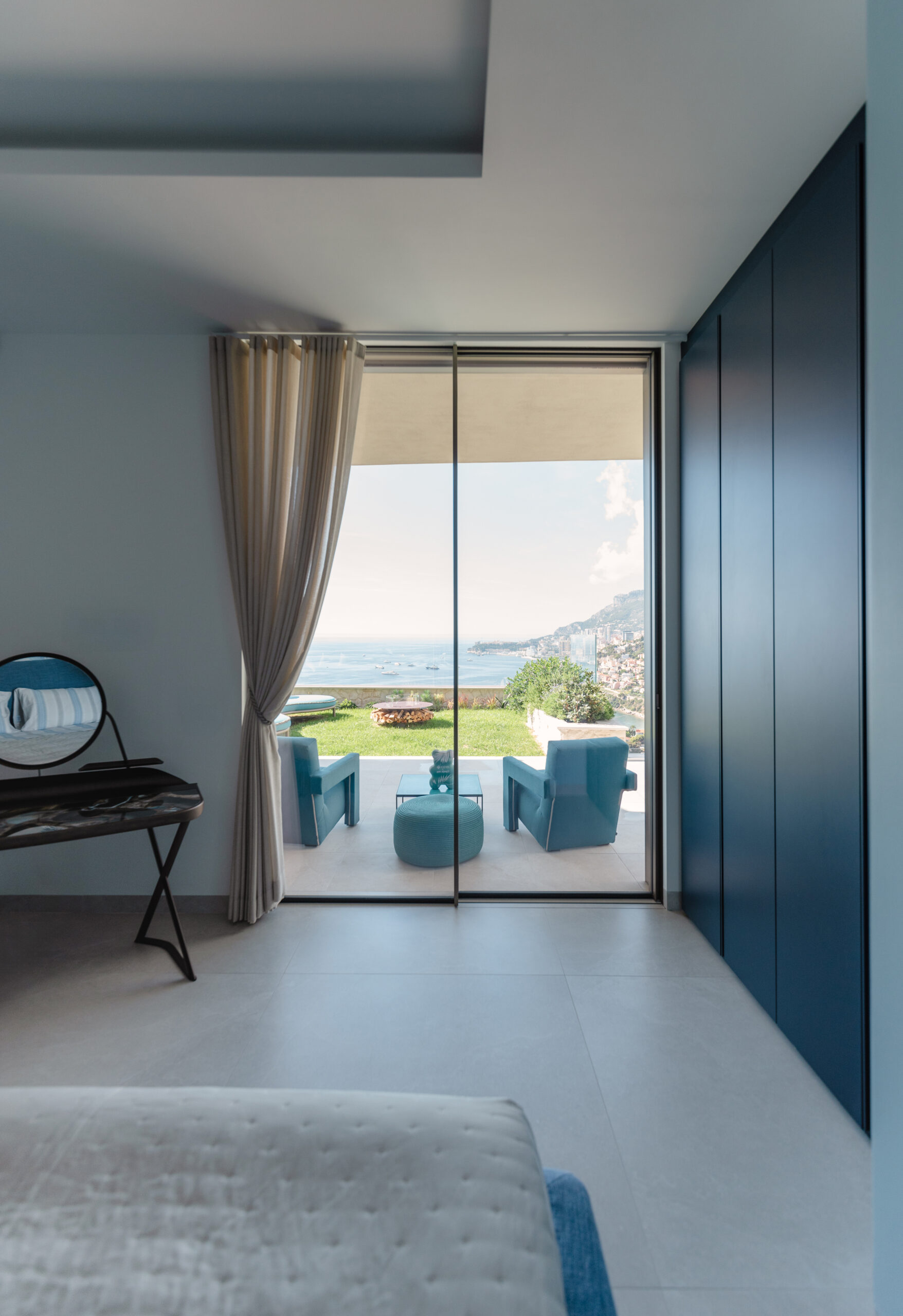 La vista mozzafiato sulla costa e la luce naturale proveniente dalle vetrate a parete creano in queste stanze atmosfere uniche, offrendo una perfetta espressione di comfort e relax a ogni ora del giorno.