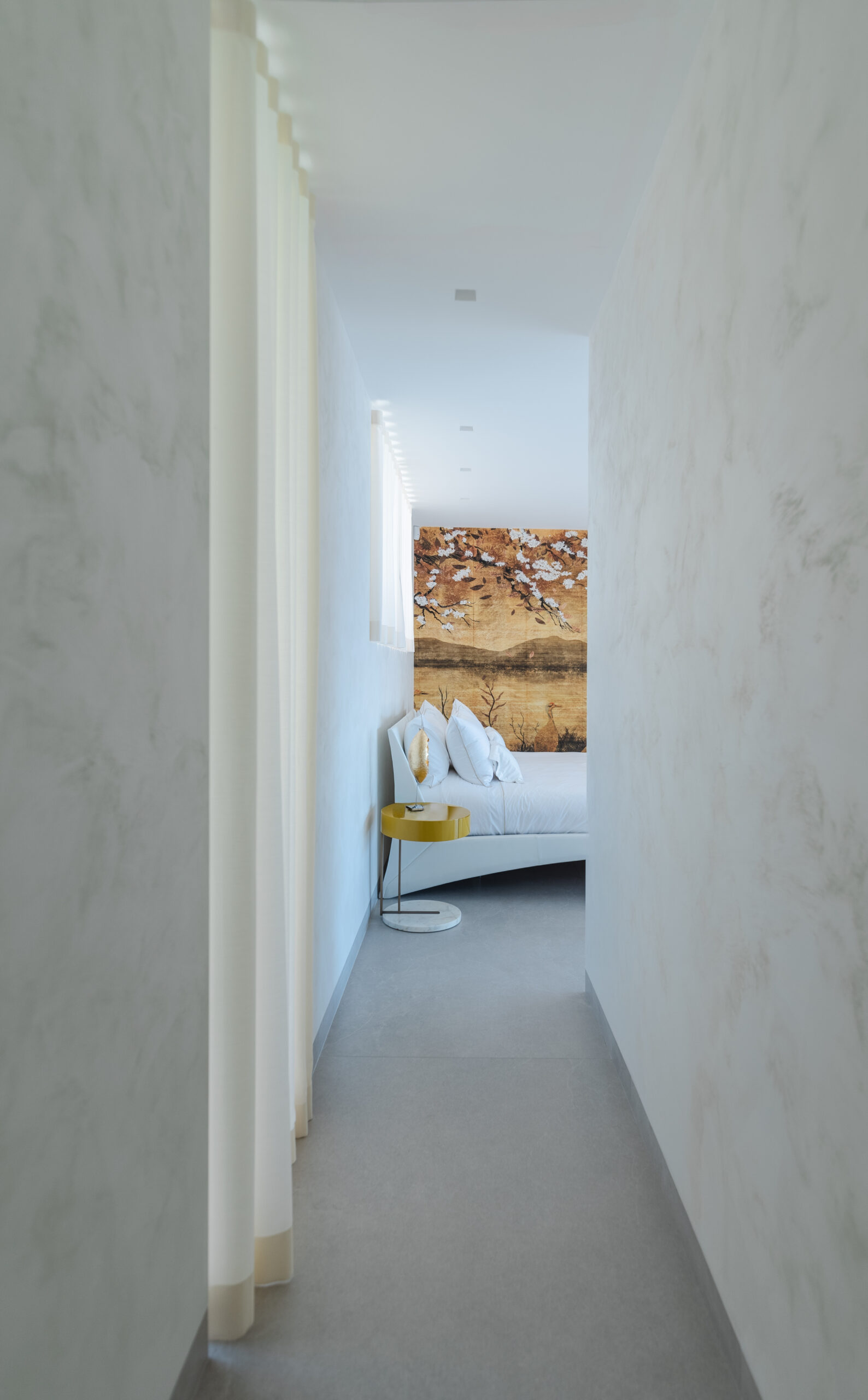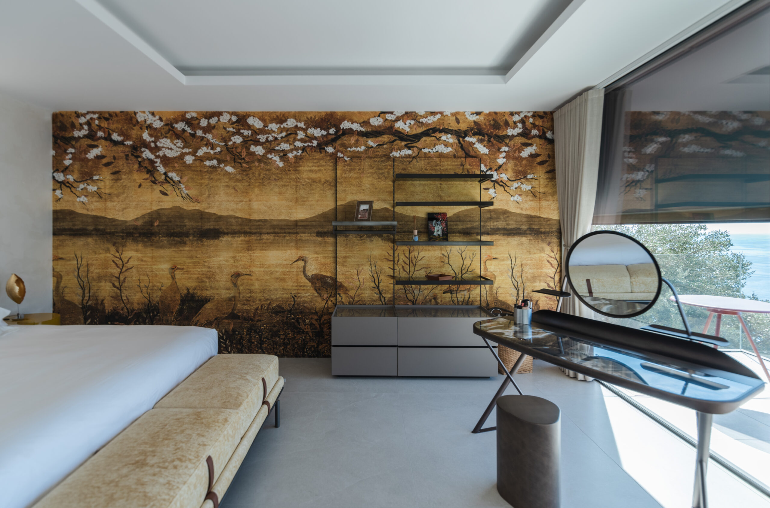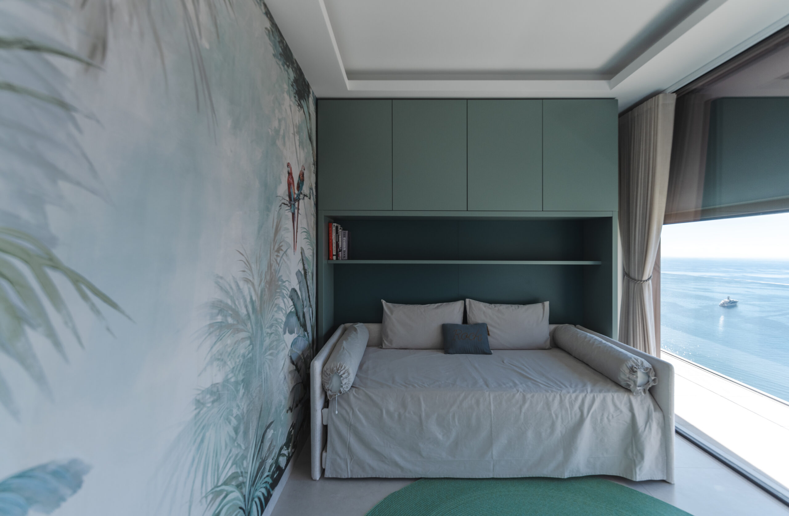 La vista mozzafiato sulla costa e la luce naturale proveniente dalle vetrate a parete creano in queste stanze atmosfere uniche, offrendo una perfetta espressione di comfort e relax a ogni ora del giorno.