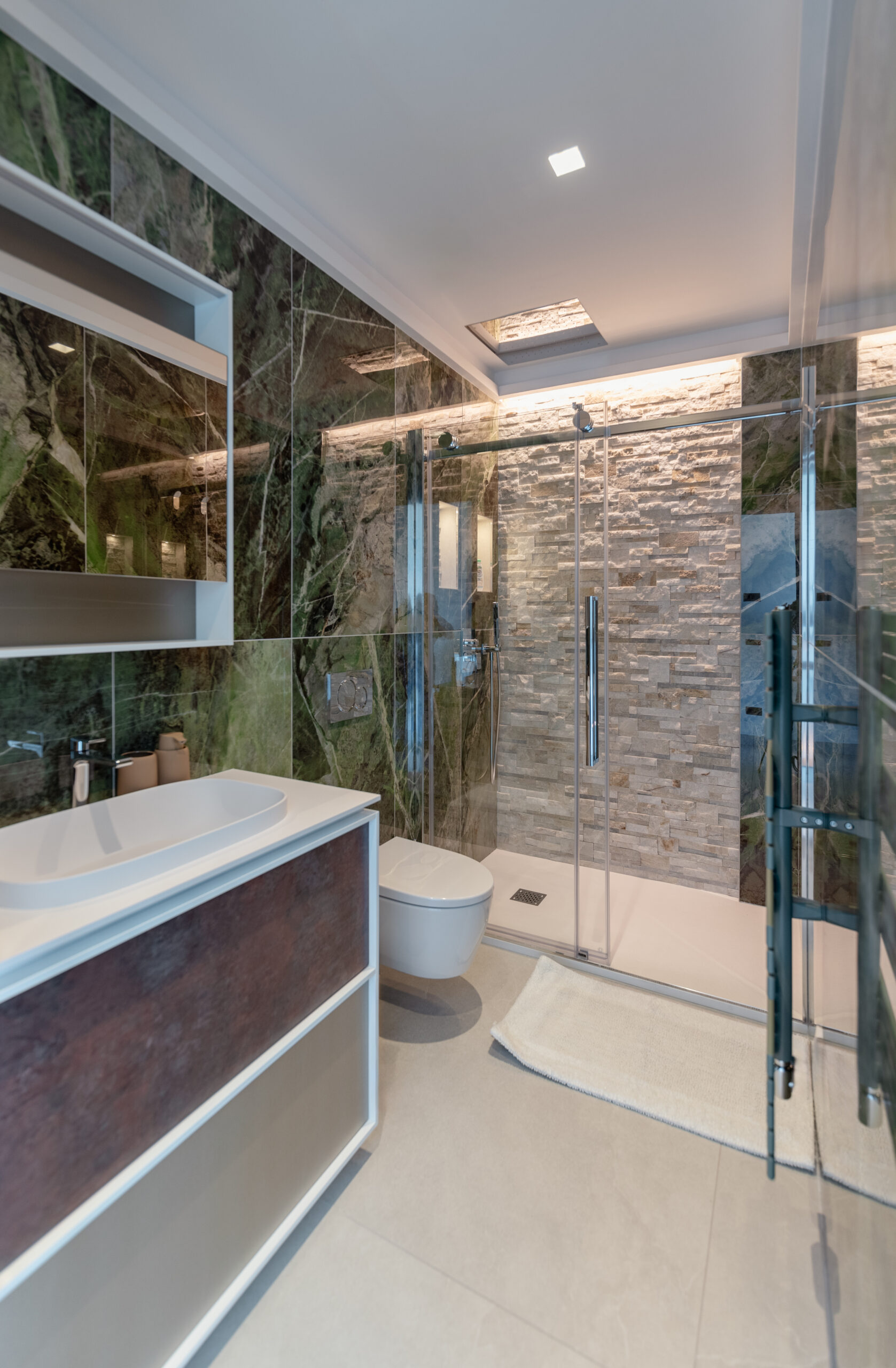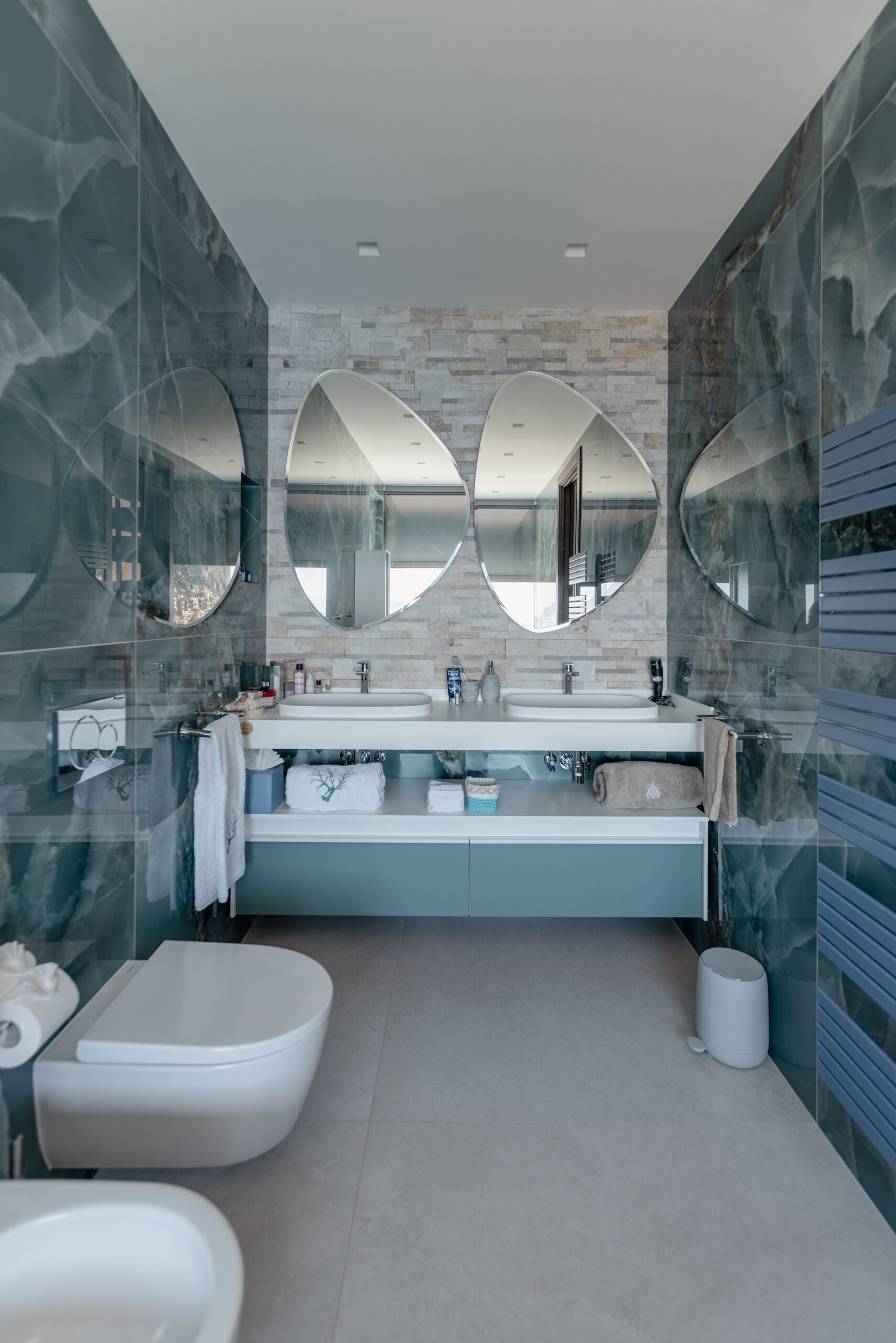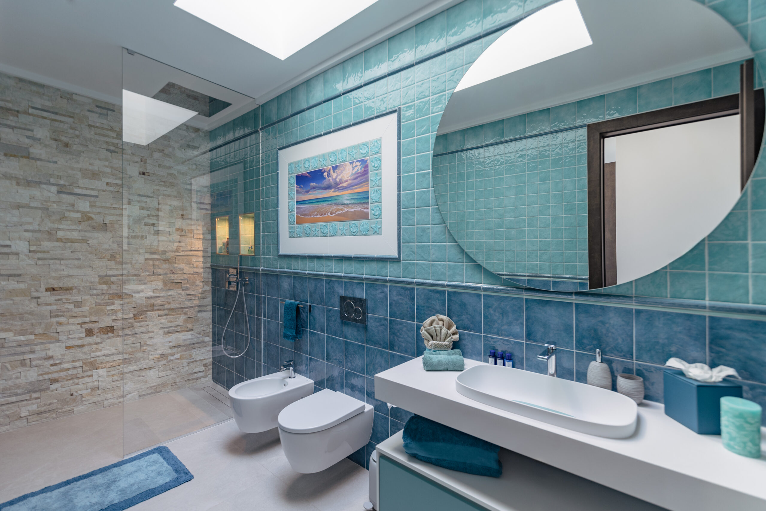 Il piano superiore è riservato alle camere da letto e ai bagni, studiati per esprimere una perfetta sintesi di gusto e personalità di ogni componente della famiglia. Colori e stile si coordinando l’un l’altro creando per ogni ambiente un peculiare tocco distintivo: sofisticato nella camera padronale, giocoso e fresco nella cameretta, sobrio nel piccolo studio/camera accessoria.