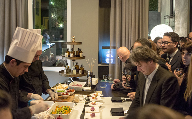 Il palazzo di via Durini 3 è stato palcoscenico di un evento unico nel suo genere come lo stesso showroom. Per esaltare l’intrinseca caratteristica narrativa della soluzione espositiva – che si sviluppa in senso ascensionale attraverso i singoli piani del palazzo – la serata ha visto come protagonista assoluto il design in ogni sua forma. Dai pezzi iconici esposti nei sei appartamenti tematici dello store, alle opere d’arte accuratamente selezionate, passando per la musica affiancata da un prelibato accompagnamento gastronomico.
