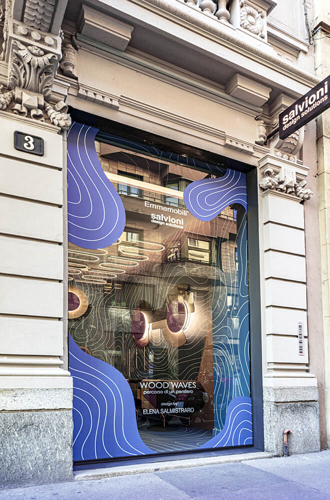 Dal 16 Ottobre 2019 la vetrina di Salvioni Milano Durini ospita “Wood Waves: percorso di un pensiero”, un progetto site specific ideato dalla poliedrica designer e artista Elena Salmistraro.
