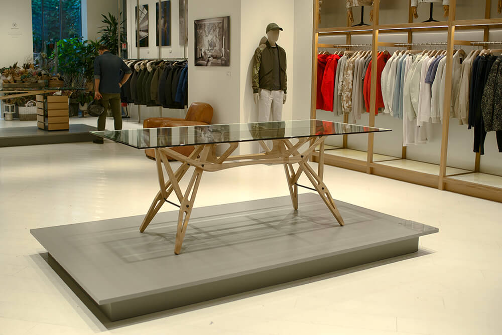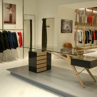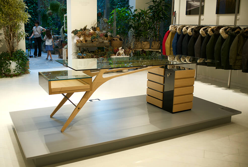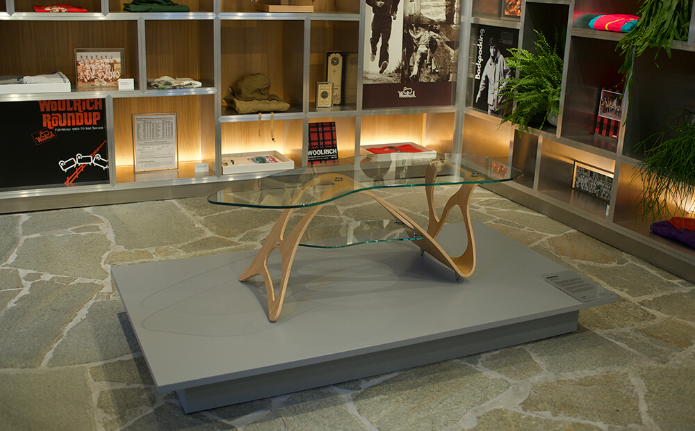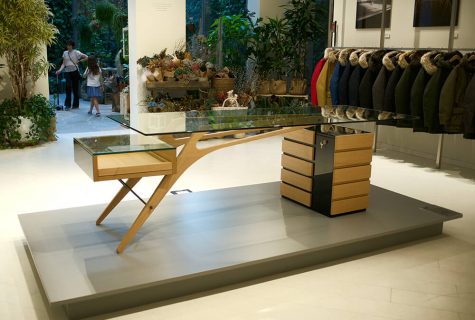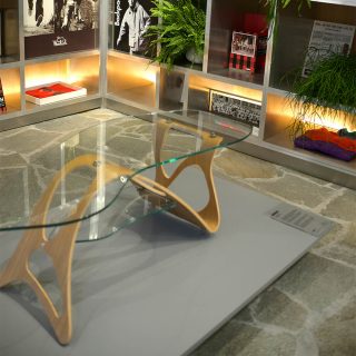 L’esposizione del flagship store, realizzata in collaborazione con Salvioni Design Solutions, è stata accompagnata da tre fra le più importanti creazioni di Mollino oggi ancora in produzione: i tavoli Arabesco, Reale e Cavour, realizzati da Zanotta, eccellenza italiana del design. Queste tre opere, disponibili per l’acquisto presso Salvioni Design Solutions, esprimono l’armonico incontro di vetro e legno nonché di design la cui bellezza si riassume nella più viva semplicità.